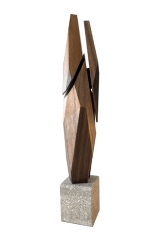 Benjamin Plé est un artiste sculpteur français diplômé de l'école Met de Penninghen. Son travail se caractérise par des lignes géométriques, explorant des motifs structurés et des superpositions de formes. La sculpture choisie pour la vente du 31 mars incarne parfaitement son style de prédilection : une sculpture en bois graphique et géométrique au style très contemporain, presque futuriste.