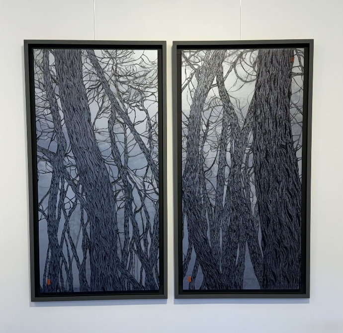You will be able to appreciate, among others, works from the Moonlight series, where the artist unfolds nocturnal landscapes in Chinese ink, with vegetation taking center stage. Forests and trees rise like living calligraphies, both dense and diaphanous, revealing the strength and fragility of the plant world. Under the moonlight, these forms come alive in a silent theater, somewhere between mystery and contemplation.