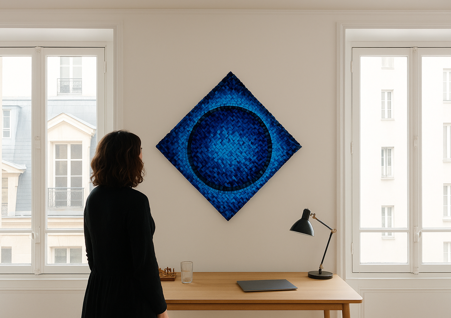 Son succès, il le doit à des œuvres graphiques et géométriques dont les volumes captivent l’œil. La couleur qu’il maitrise à la perfection nous fait voyager dans son univers envoûtant.